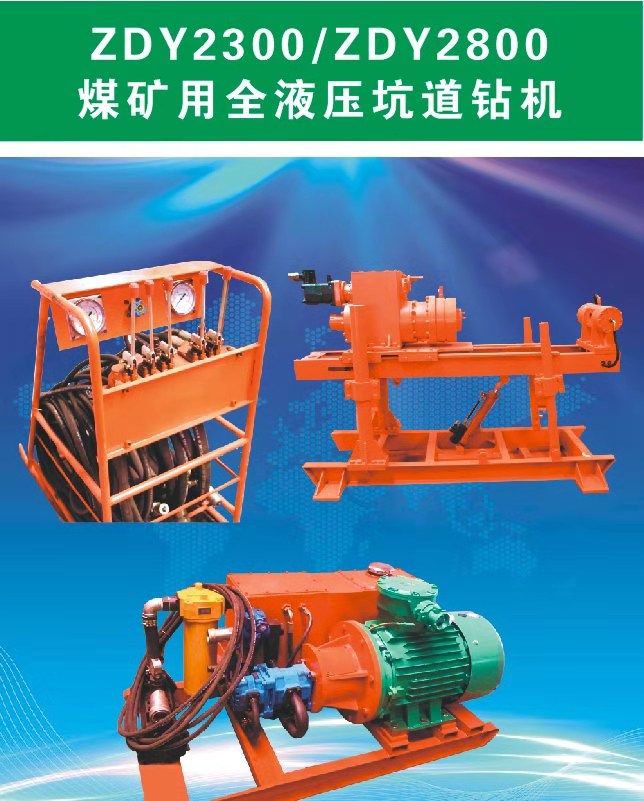 ZDY2300/ZDY2800煤礦用全液壓坑道鉆機主要用于煤礦井下鉆進瓦斯抽(排)放孔、注漿防滅火孔、媒層注水孔、防突卸壓孔、地質勘探孔及其它工程孔。適用于巖石堅固性系數f10的各種煤層、巖層。要求巷道或鉆場斷面大于6.52,高度大于寬度25m,大于2.8m。
