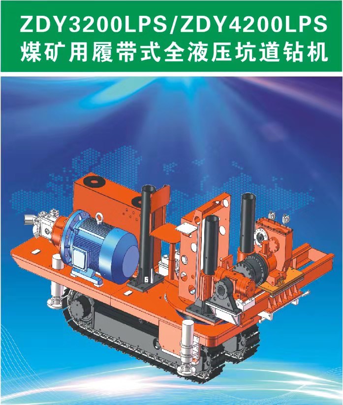 ZDY3200LPS/ZDY4200LPS煤礦用履帶式全液壓坑道鉆機主要用于煤礦井下鉆進瓦斯抽(排)放孔、注漿防滅火孔、煤層注水孔、防突卸壓孔、地質勘探孔及其它工程孔。適用于巖石堅固性系數f10的各種煤層、巖層。鉆機可獨立行走,原地轉彎,要求巷道或鉆場斷面大于10.5m2,高度大于2.5m,寬度大于3.6m